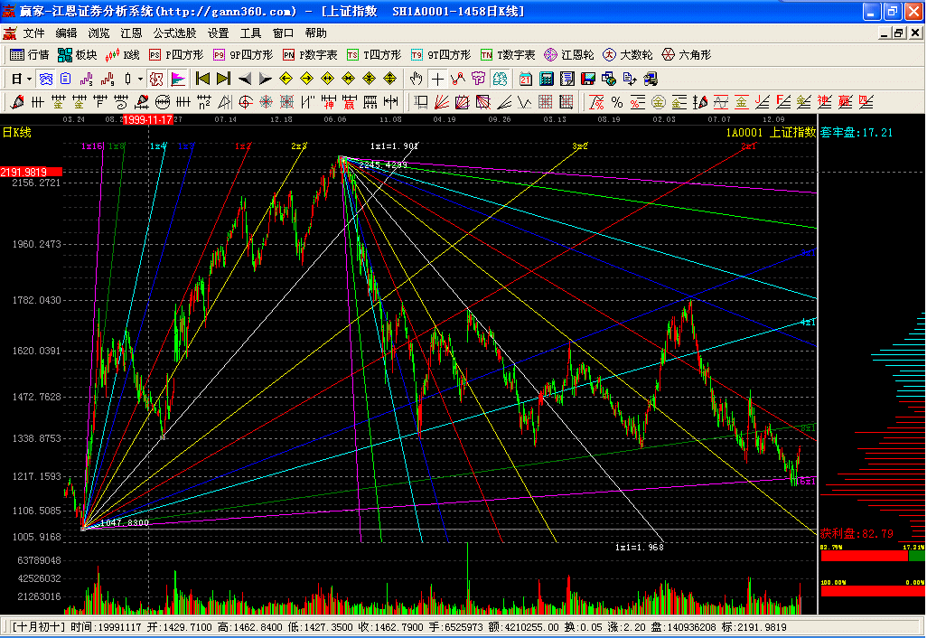 江恩理論是眾所周知的著名證券分析理論之一,是一套完整的操作和預測相結合的理論體系,它的分析方法獨特,分析工具特別,分析和預測效果卻匪夷所思。江恩理論,對一個初學者來說也許感到艱辛,因為這個理論不容易被人理解和掌握,常常使你面對理論和k線無從著手應用,贏家江恩軟件多年來一直致力于江恩理論的研究和應用,并將研究成果制作成分析軟件--《贏家江恩證券分析系統》,誕生于1999年,迄今24年了,深受各大券商從業人員,私募基金經理所喜愛。這是一套完全的江恩理論的軟件,很好的解決了江恩理論的應用問題,軟件中除具備江恩當年使用的分析工具以外,作者根據多年的研究和理解,獨創了很多的分析工具,這些工具是在理解江恩所說的自然法則的基礎上延伸出來的,有些是江恩理論的復雜應用,可以說這些工具是江恩理論的傻瓜式應用,只要您了解了他們的應用方法,即使你不能完全理解江恩理論也可以應用江恩理論,因為每一個分析工具都遵從自然法則。這就是贏家江恩軟件的重大突破。